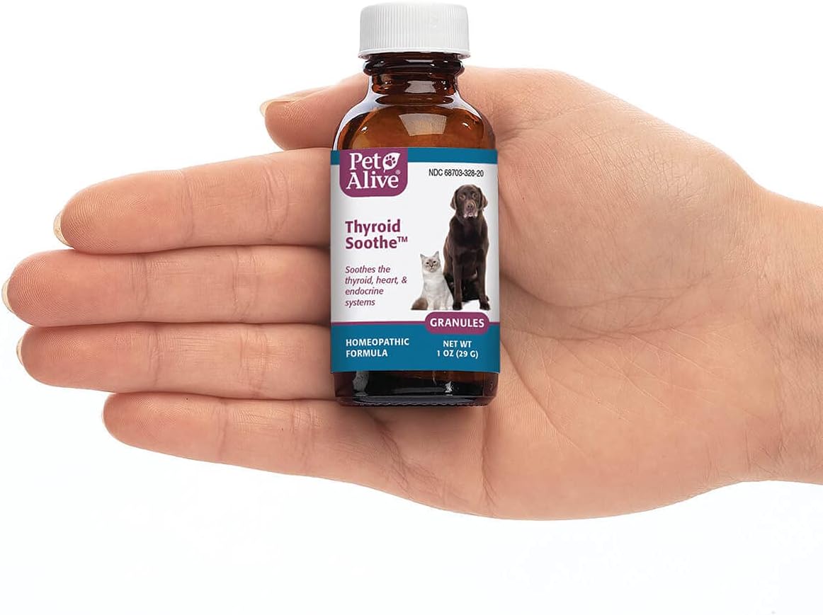 Symptoms of an Overactive Thyroid in PetsThe thyroid gland consists of two small lobes shaped like butterflies, one on each side of the windpipe (trachea) located in the neck. This gland produces thyroid hormones whose primary function is regulating and maintaining your pet's metabolic rate, in turn affecting their overall health and wellbeing.Another hormone, called thyroid stimulating hormone (TSH), is produced by the pituitary gland and controls the production of the thyroid gland hormones T3 and T4. If the thyroid is not functioning properly, there could be an impact on your pet's body weight, heart rate, skin and coat, digestive, and reproductive health.Hyperthyroidism can affect middle-aged to older cats (between 4 and 22 years of age), seldom developing in dogs. When hyperthyroidism occurs, the thyroid gland is overactive, producing too much thyroid hormone and speeding up metabolism.Common symptoms and possible signs of hyperthyroidism include weight loss (even with increased appetite), diarrhea symptoms, vomiting, heat intolerance, a dull, dry or oily coat with excessive shedding, rapid or fast breathing, increased water consumption and urination, increased or decreased activity, and behavioral changes such as nervousness, restlessness, or feelings of stress.Natural Treatment for Common Symptoms of an Overactive Thyroid in PetsThyroid SootheTM is a safe, effective, non-addictive natural remedy made of 100% homeopathic ingredients. Formulated by our team of experts in natural medicine, Thyroid SootheTM is specially formulated to help temporarily relieve common symptoms of an overactive thyroid in dogs and cats. Thyroid SootheTM also temporarily reduces common symptoms including changes in appetite and excessive shedding.Thyroid SootheTM is a powerful homeopathic formulation for addressing thyroid and endocrine system health and functioning in pets. Using a unique, proprietary blend of highly diluted and scientifically selected natural substances, Thyroid